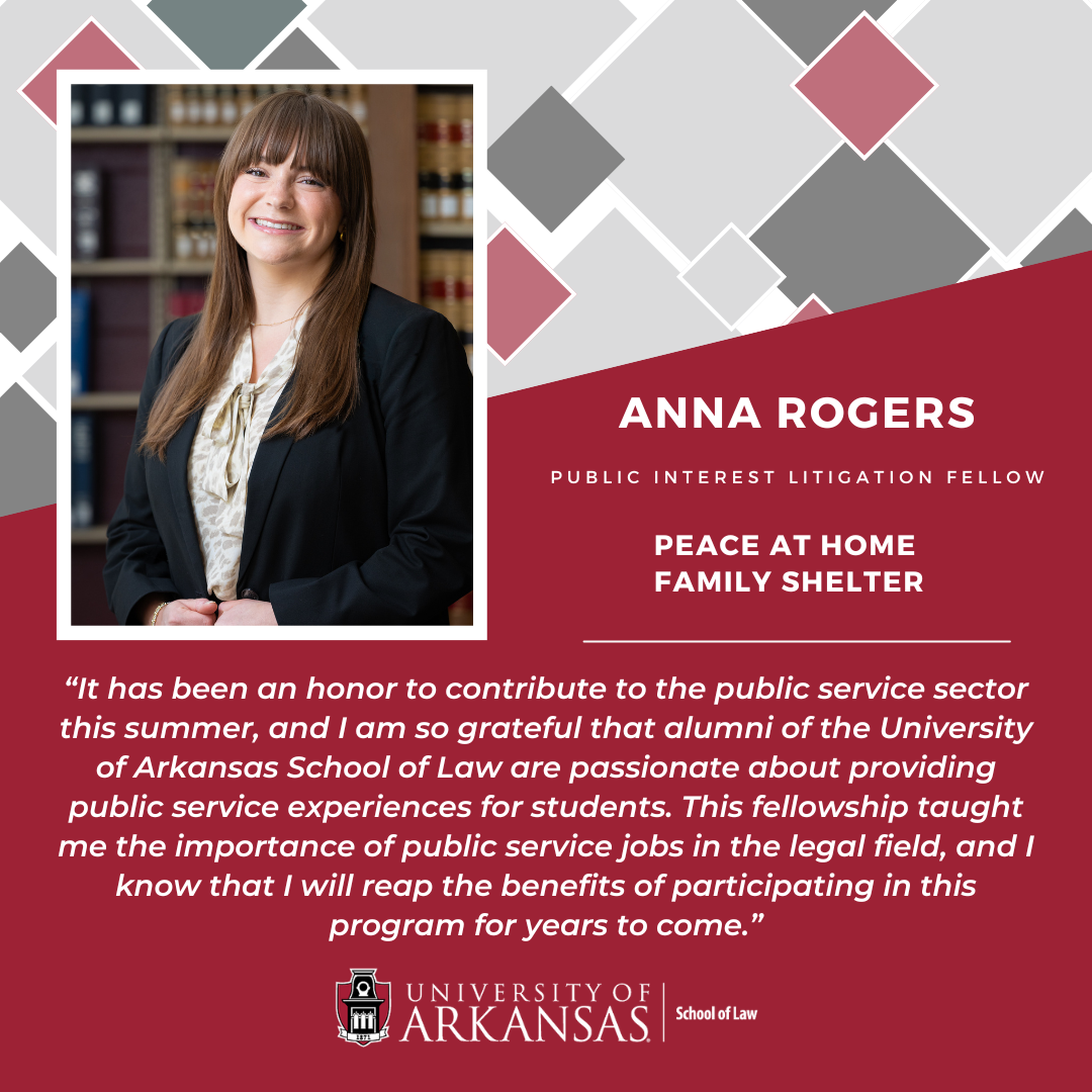 - Grace Faulkenberry, Rose Law Firm 200th Anniversary Public Service Fellow (Legal Aid of Arkansas-Housing Group)